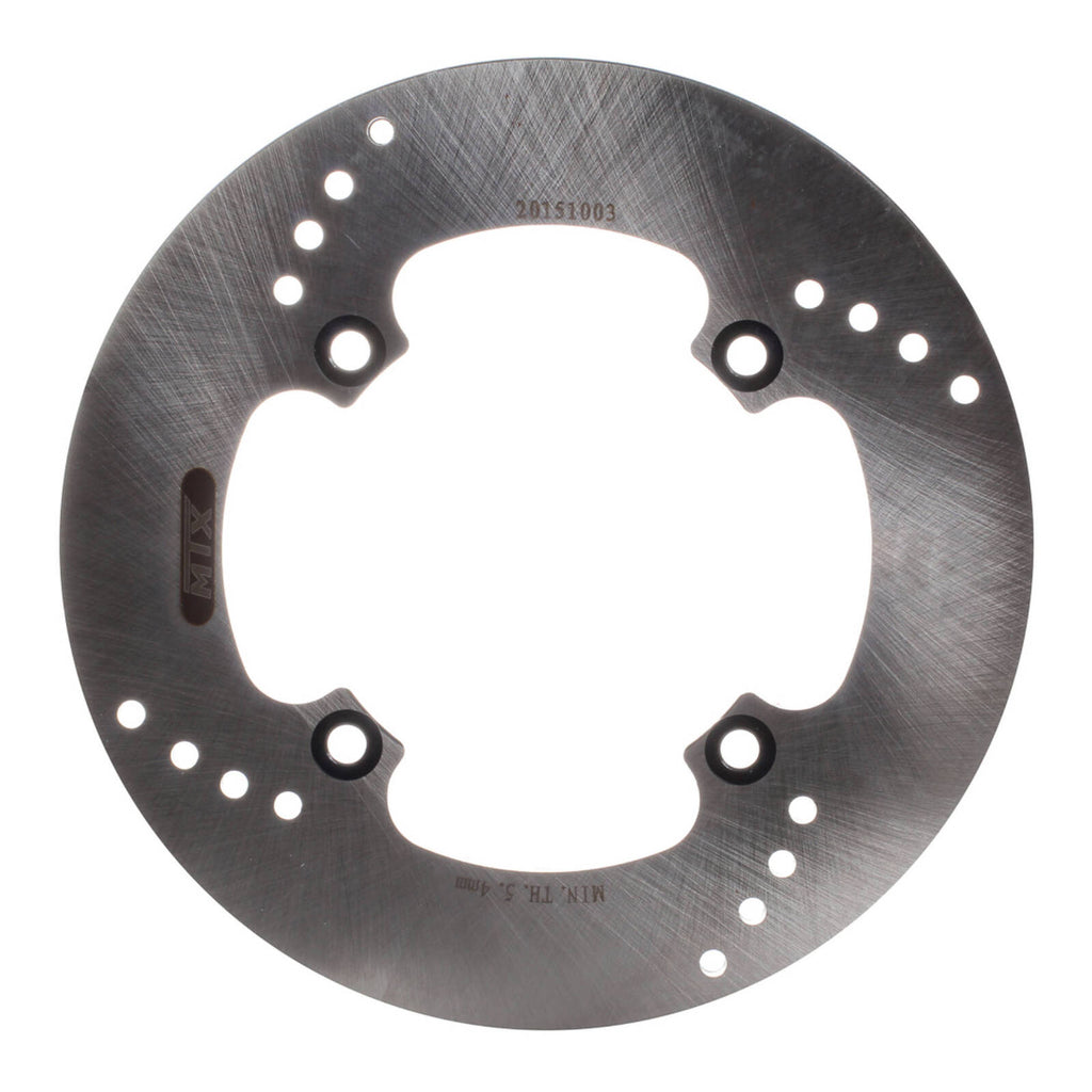 MTX solid discs are constructed using one complete segment of Japanese SUS 420 stainless steel, then heat-treated to HRC 36+-2. Lightening and drill hole patterns are as per OEM designs to improve braking performance and reduce the temperature of the disc.