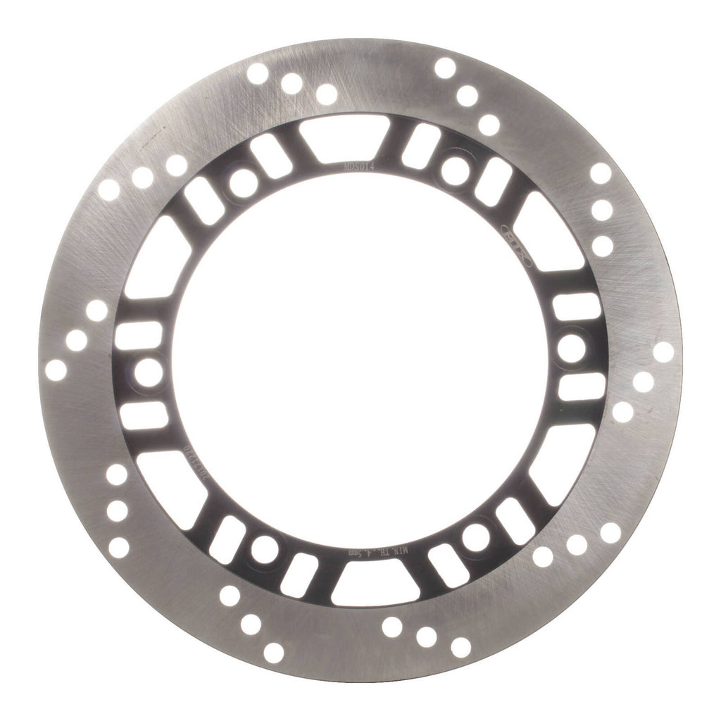 MTX solid discs are constructed using one complete segment of Japanese SUS 420 stainless steel, then heat-treated to HRC 36+-2. Lightening and drill hole patterns are as per OEM designs to improve braking performance and reduce the temperature of the disc.