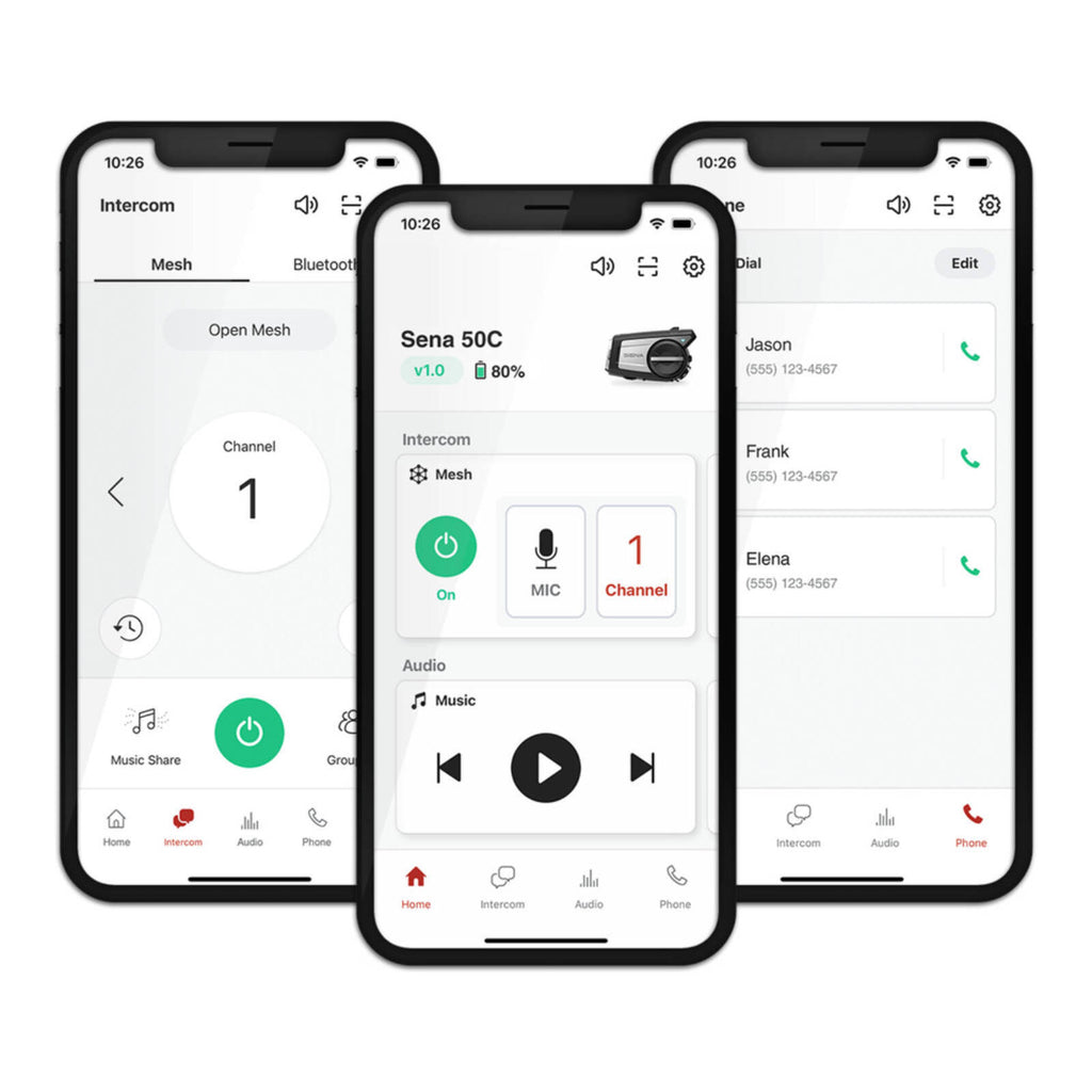 The new Sena Motorcycles App gives users a way to configure the 50C’s device settings visually. Download the app to customize different settings and features on the 50C, including managing channel settings for Open Mesh remotely or setting up a private group for Group Mesh.