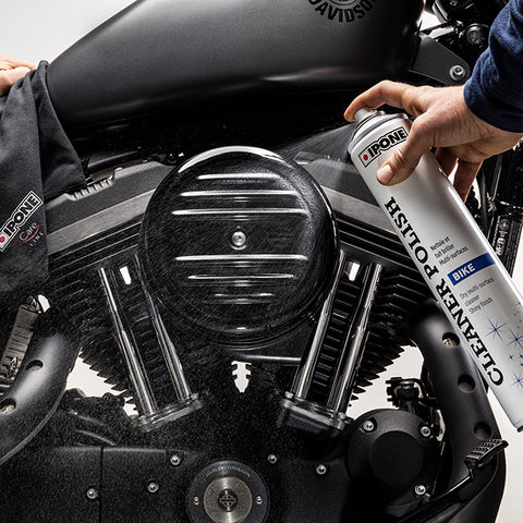 Ipone Cleaner Polish is a multi-use cleaning spray that does not require water. It removes encrusted dirt from all types of material and makes your vehicle shine. Spray the product on the area to be treated, then wipe using a soft, clean cloth.