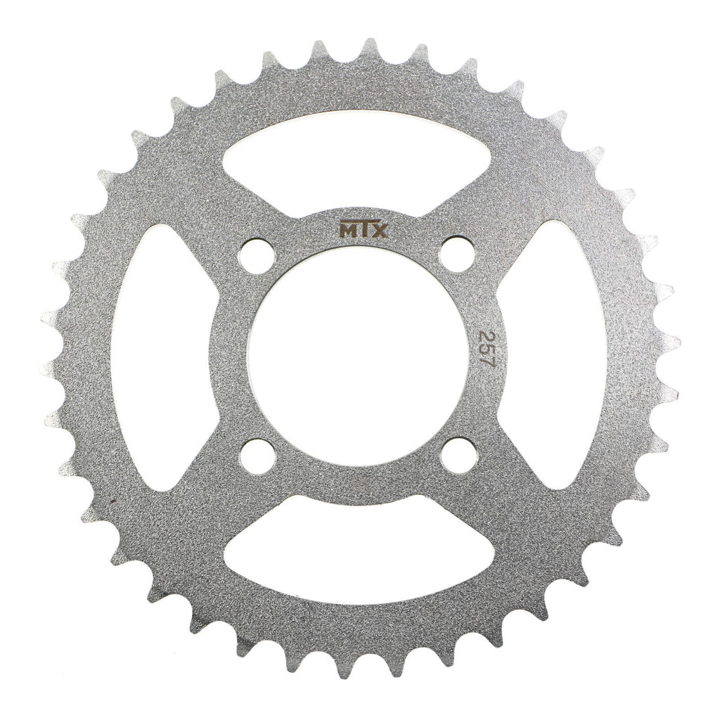 MTX OE Steel sprockets are strong and durable, heat-treated and hand-finished for longevity. Front sprockets are constructed from SCM420 chromoly steel alloy where rear sprockets are constructed from C45 high carbon steel with a Zinc electroplated finish. Designed as an OEM replacement to exceed OEM specifications at a fraction of the price, making them your ideal cost-effective solution for replacing old worn and warped sprockets.