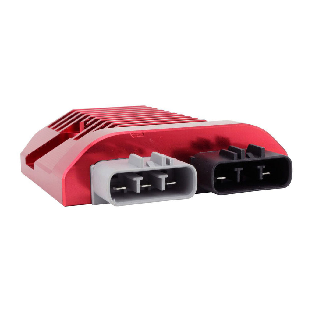 Our new RMSTATOR machined aluminium Mosfet voltage regulator is a great upgrade for heat dissipation in any powersports charging system. After 10 minutes of use, our billet aluminium heatsink runs cooler by 33% than standard cast regulator housings. Our new RMSTATOR red regulator, equipped with the renowned Mosfet regulation technology, is an added value to any three-phase permanent magnet charging system.