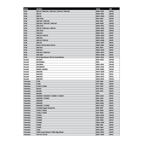 Note:Some KTM/Husqvarna/Gasgas models may require using the OEM cam or the additional purchase of White’s cam set WPGRPLGC13.