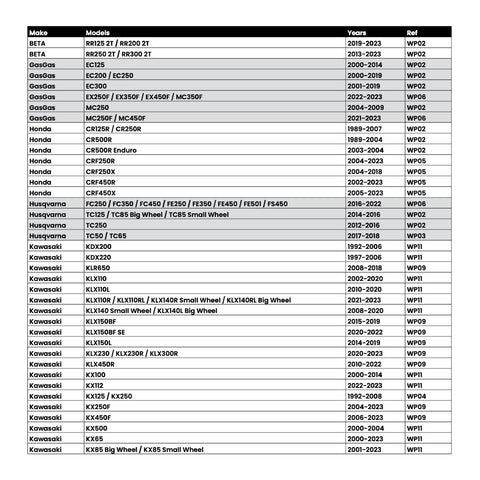 Note: Some KTM/Husqvarna/Gasgas models may require using the OEM cam or the additional purchase of White’s cam set WPGRPLGC13.