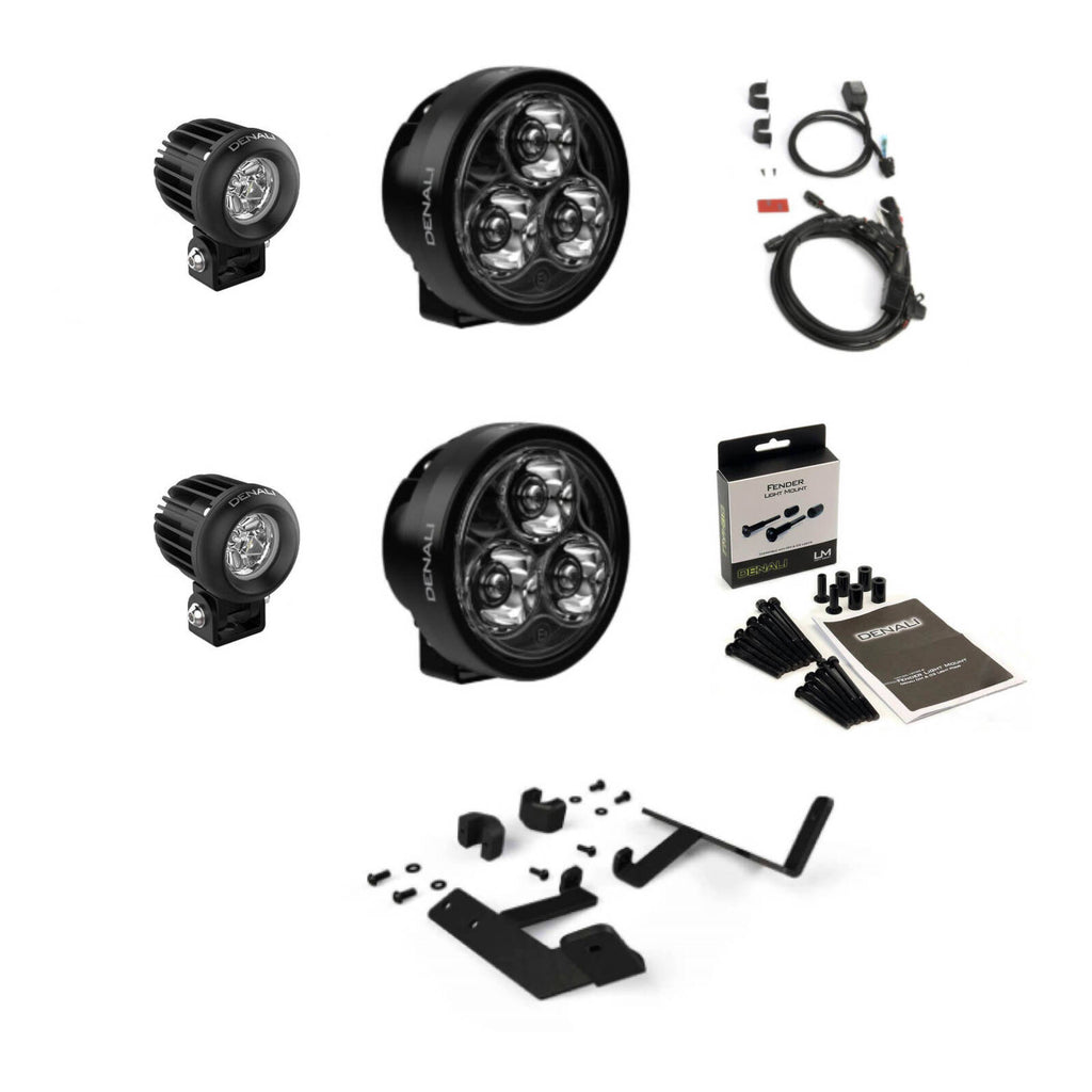 This convenient Denali lighting kit combines several high-quality Denali components including a wiring harness, light mount, and lights. It's designed to give you everything you need to equip your machine with an improved lighting setup and illuminate your riding experience.