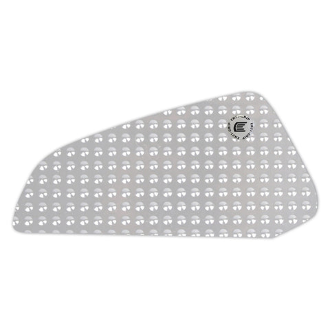 The ‘Evo’ series tank grip features pronounced hemispherical traction domes. Ideal for riders who want that added level of confidence by being able to feel the grip through their leathers. Available in Black and Clear.