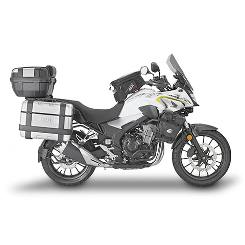 To fit panniers, you will need a pannier rack. Givi offers racks suitable for mounting almost any type of Givi luggage - Monokey cases use the PLO1171MK rack, Trekker Outback cases use the PLO1171CAM rack, V35/V37 cases use the PLX1171 rack or soft luggage is comptabible with TR1171. Note that if a Givi top case rack is not fitted, you will also need a 1121KIT adaptor kit. Please also note that GRT709 and GRT720 soft panniers are not compatible with this bike.