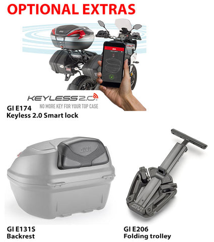 40 lt top box. Will fit one helmet.