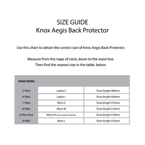 • Plate sizes relate to torso length, so it is important to measure your nape-to-waist length against the attached sizing chart