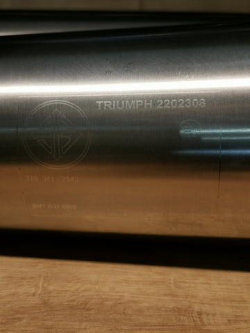 These Triumph Genuine mufflers were taken off a factory new showroom bike, are unused and still in "fresh out the box" condition. Sold as a set, not individually.