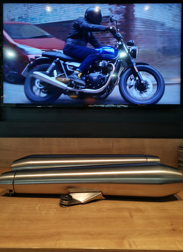 Removed from a Street Twin 900 in our showroom at Bayride Motorcycles in Tauranga, we are an authorised Triumph dealership. The bike was then refitted with aftermarket mufflers.