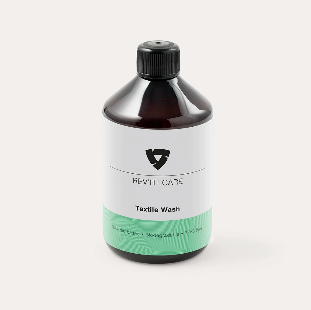 This specialised, bio-based textile wash from REV'IT!'s Care range, has been designed for shell garments with waterproofing membranes. Because washing and cleaning is an important part of the maintenance of technical fabrics such as those used in motorcycle apparel, it is important to use textile cleaners that are specifically designed for those fabrics. REV'IT!'s bio-based textile detergent helps maintain the fabric's water-repellent and breathability properties, without leaving a chemical residue. It is also effective in cold water and is ideal to use as prep before reproofing with REV'IT! Care waterproofing products. With a very concentrated bio-based makeup of 15-30% soap, 5-15% non-ionic surfactants, 1-5% anionic surfactants, less than 1% preservatives (2-phenoxyethanol), and enzymes, this textile wash is biodegradable and helps REV'IT! shape a sustainable future for riding.