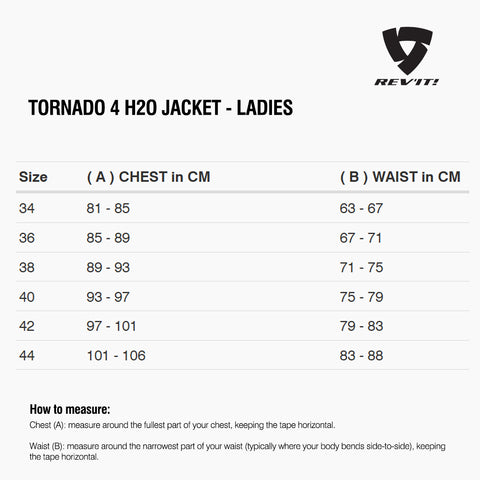 The ladies-fit REV’IT! Tornado 4 H2O motorcycle jacket is the touring jacket for your next motorcycling adventure. A tried and tested staple in the REV'IT! lineup, it offers the essentials that female tour riders are looking for when hitting the road: ventilation, waterproofing, and a high level of protection, wrapped into a smart adventure-ready design. Customised for your rides: if the temperature heats up during your ride, you simply remove the detachable thermal and waterproof liner and let the fully ventilated 3D air mesh chest, arms, and back panels allow the air flow directly toward your body. And when it gets cold again, just reattach the thermal liner and choose whether you want to wear your durable yet easily packable 3L Hydratex waterproof liner on the outside or inside of your jacket. Extra functionality includes reflected visibility at the chest, shoulders, and back, 3D air mesh ventilation, Hypalon® and ripstop shell fabrics that enable the Tornado 4 H2O jacket to achieve Class AA CE Certification.