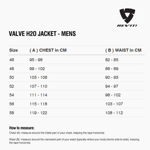 A high-tech, all-season waterproof jacket ready for short/long touring adventures on the asphalt. The Valve H2O is REV'IT!'s fully loaded touring jacket prepared for asphalt adventures in any season. Thanks to the combination of waterproof CORIUM+® leather on the arms and the breathable 3L Hydratex waterproof laminate on the body, you are always fully protected from the elements. A detachable thermal liner will keep you warm while riding in colder temperatures. And to improve your comfort level, a detachable storm collar keeps away the wind and rain from your neck. When the temperatures start to rise while riding, you can easily direct cool air to your upper body with the help of the VCS|Aquadefence ventilation system. Just open up the flaps on the chest and secure them with the magnetic Fidlock® system. All of this can be done with one hand while riding. By opening the ventilation zippers on the back, the warm air from inside the jacket can easily escape, helping to keep your upper body at the ideal temperature. Rain or shine, cold or warm, it doesn’t really matter. The Valve H2O motorcycle jacket will get you to your destination in comfort.