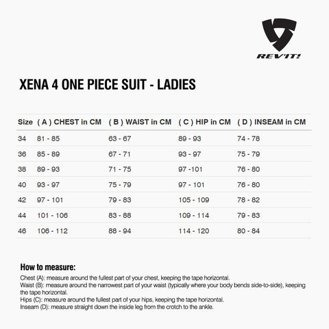 For all the fast female riders out there who want to put down their quickest lap times, REV'IT! bring you the Xena 4 Ladies one-piece race suit. A full-leather, female-specific, one-piece suit for sport riders. Through the combination of performance cowhide, strategically placed stretch panels, and the ability to adjust the knee sliders, REV'IT! have ensured a proper tailored fit was at the top of their priority list. The Xena 4 Ladies one piece is prepared for an airbag system, but due to the close fit and design, you must purchase one size bigger than your usual size. Additionally, a host of supplementary safety features (BETAC® elbow, knee, and shoulder protectors), safety seams, and much more all equate to a CE Class AAA certification.