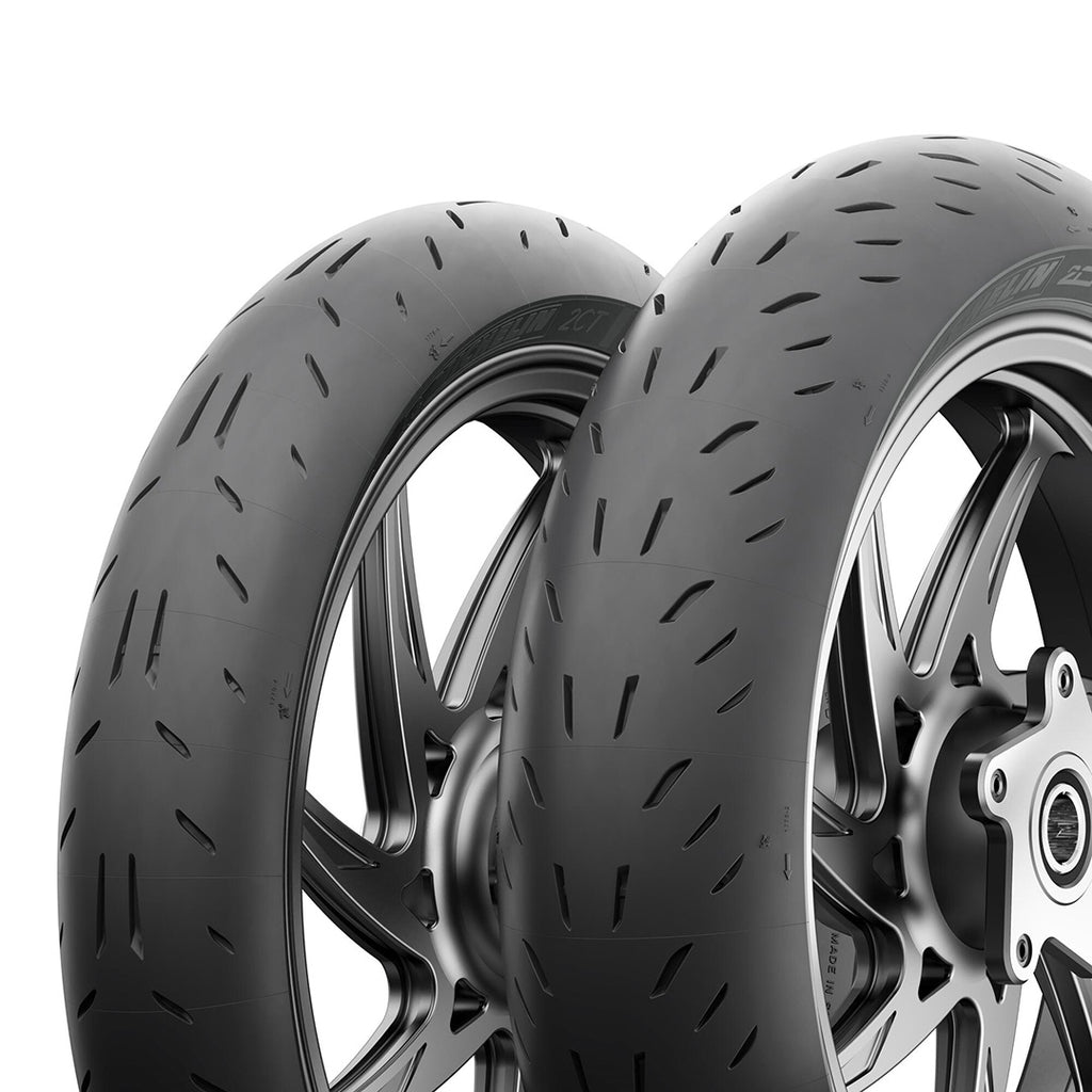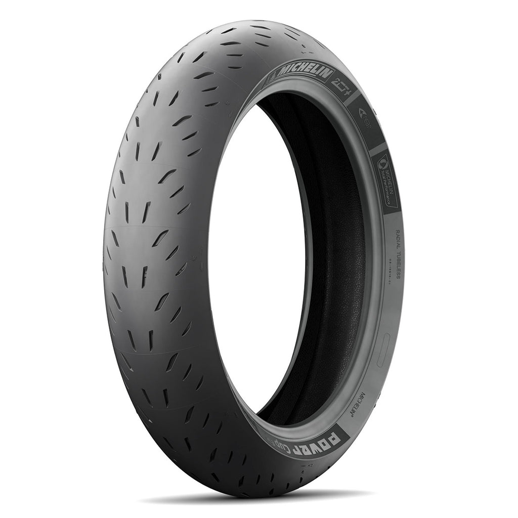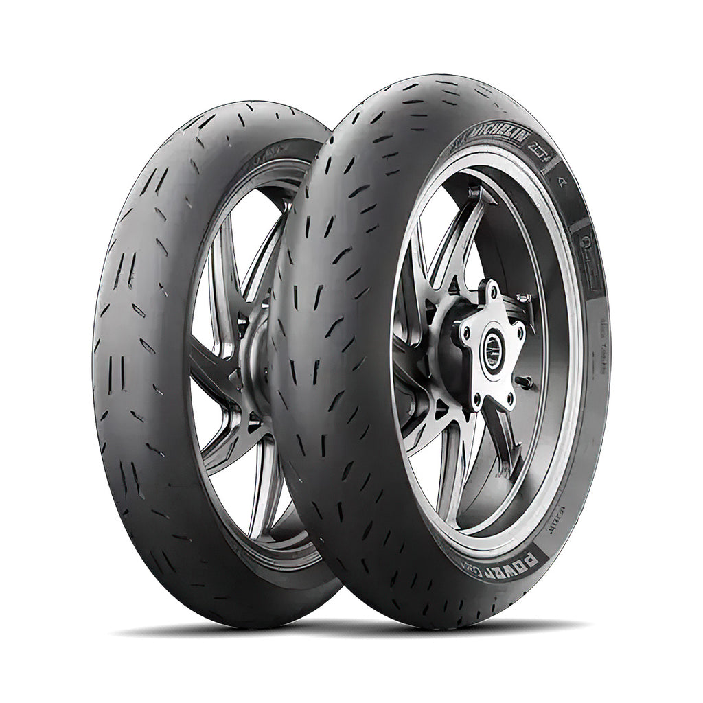 The Michelin Power Cup EVO motorcycle tyre gives maximum riding pleasure for both track and street. Excellent grip is provided with Michelin 2CT Technology for a versatile small capacity track tyre that is also approved for road use. Plug-and-Play Performance covers Michelin's range of street, track day and race tyres. Quick warm up and shared architecture, dual compounds and tread patterns enable effortless sportbike set-up from street to track. Motorcycle tire warmers are recommended, but not mandatory. Michelin Premium Touch Design graces the Power Cup EVO sidewalls with patented and recognisable style.