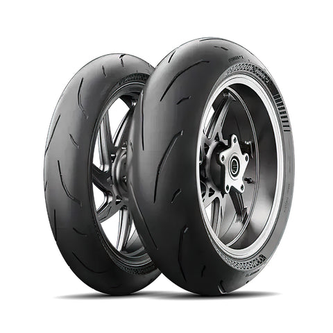 Plug-and-play performance for confidence in dry grip for both road and track. Take advantage of a sporty motorcycle tyre with the Michelin Power GP2 , engineered with Michelin MotoGP expertise and optimized for road and track use to provide maximum cornering and handling performance.