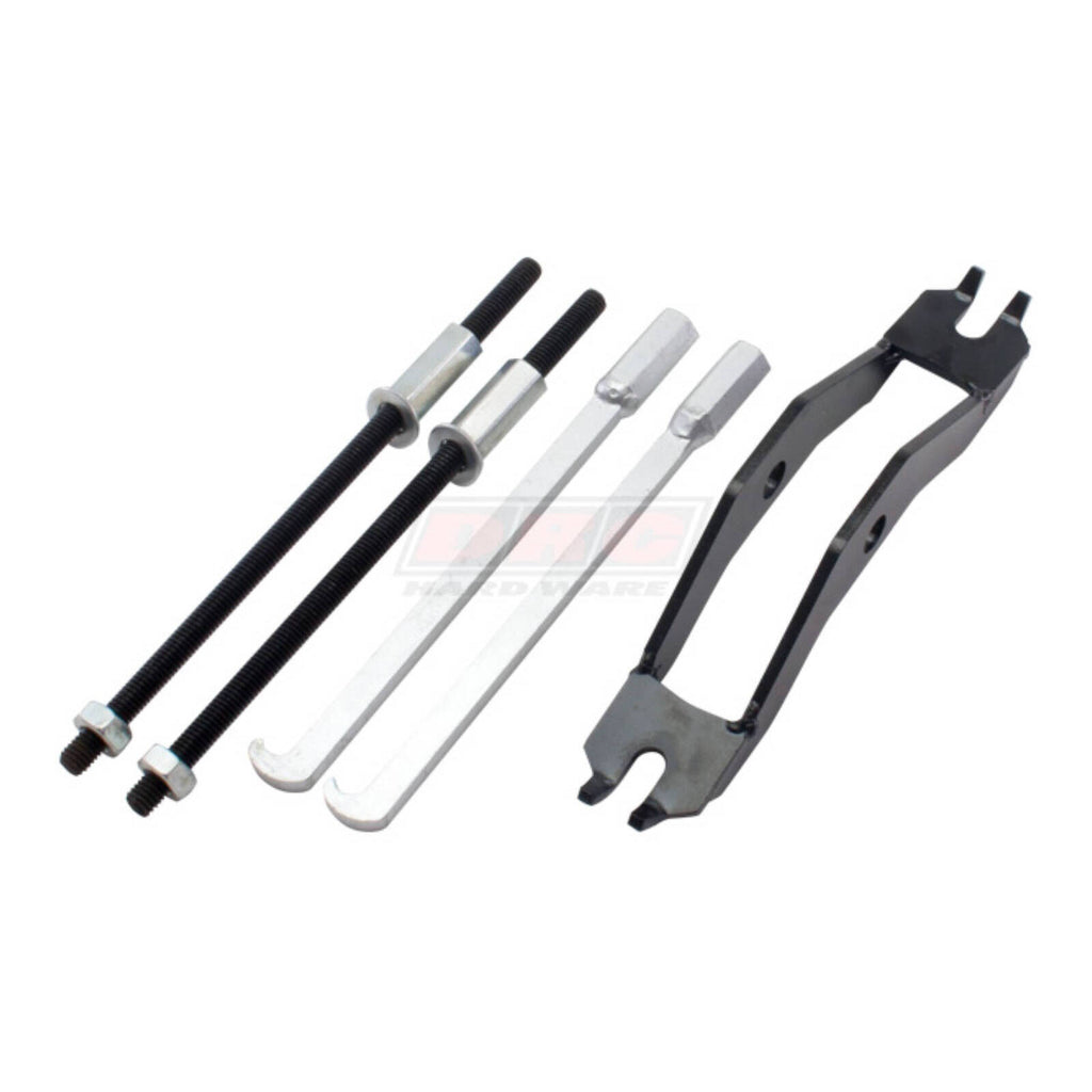 - 2 spring hooks hold the springs secure while compressing the springs, making it easy to remove the springs from the shock bodies.