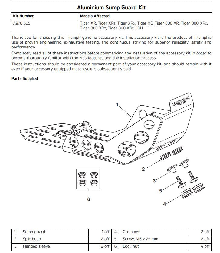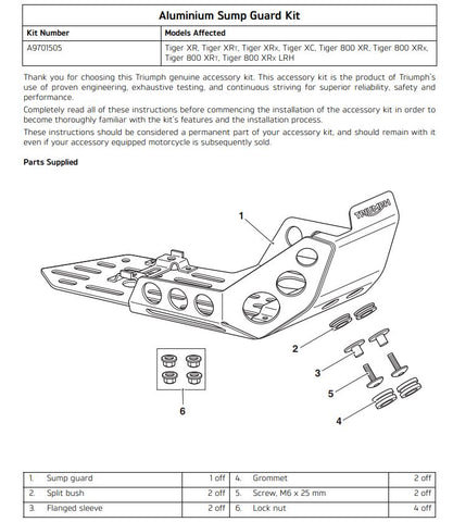 Genuine Triumph Sump Guard Kit (Aluminum) to suite Triumph Tiger 800's.