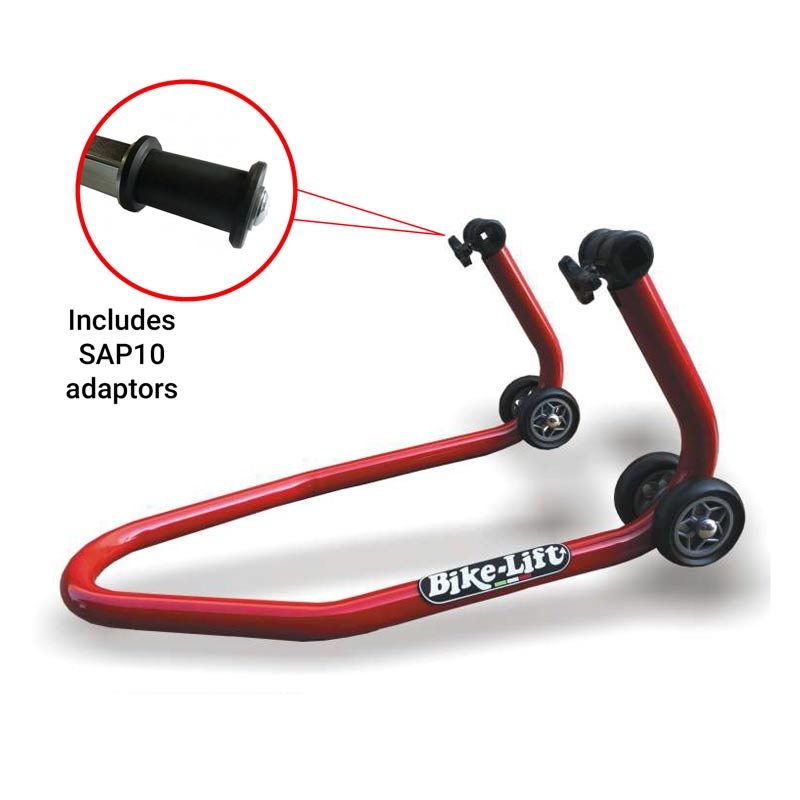 FS-10 Universal front adjustable stand. Fits under forks using sliding adaptors. 33 cm high. Available with your choice of the following adaptors: