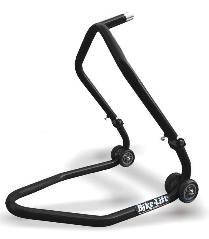 FS-11 Universal front stand for the handlebar stem. It allows easy removal of the wheel and of the fork rods. It includes different sized pins to fit into the steering stem hole of any bike. Available in Red or Black