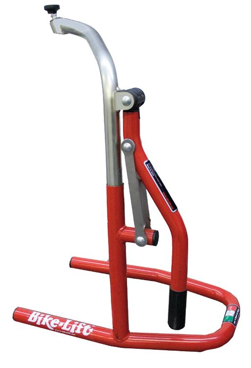 Hand lever front headstock stand for sport bikes.  Supplied with a universal conical pin and a nylon rubber adapter for motorcycles whose heaset had no hole underneath.  Ideal for Ducati and MV Agusta.