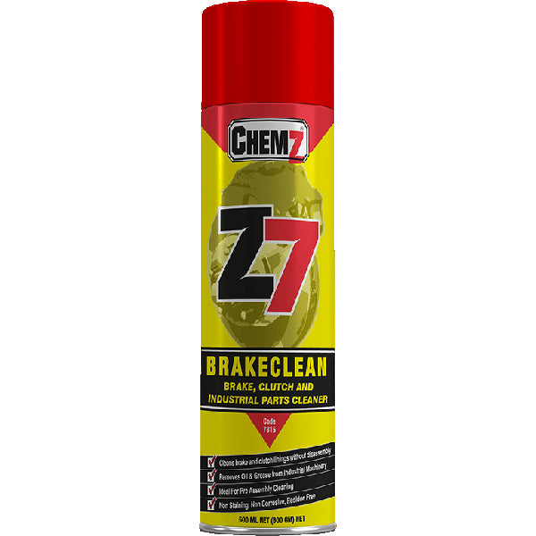 Chemz Z7 is formulated to remove oils, grease, brake fluids, tar, adhesives, dirt and moisture from industrial and mechanical equipment. Also cleans and degreases brakes, clutches, disc brakes and calipers without disassembly.