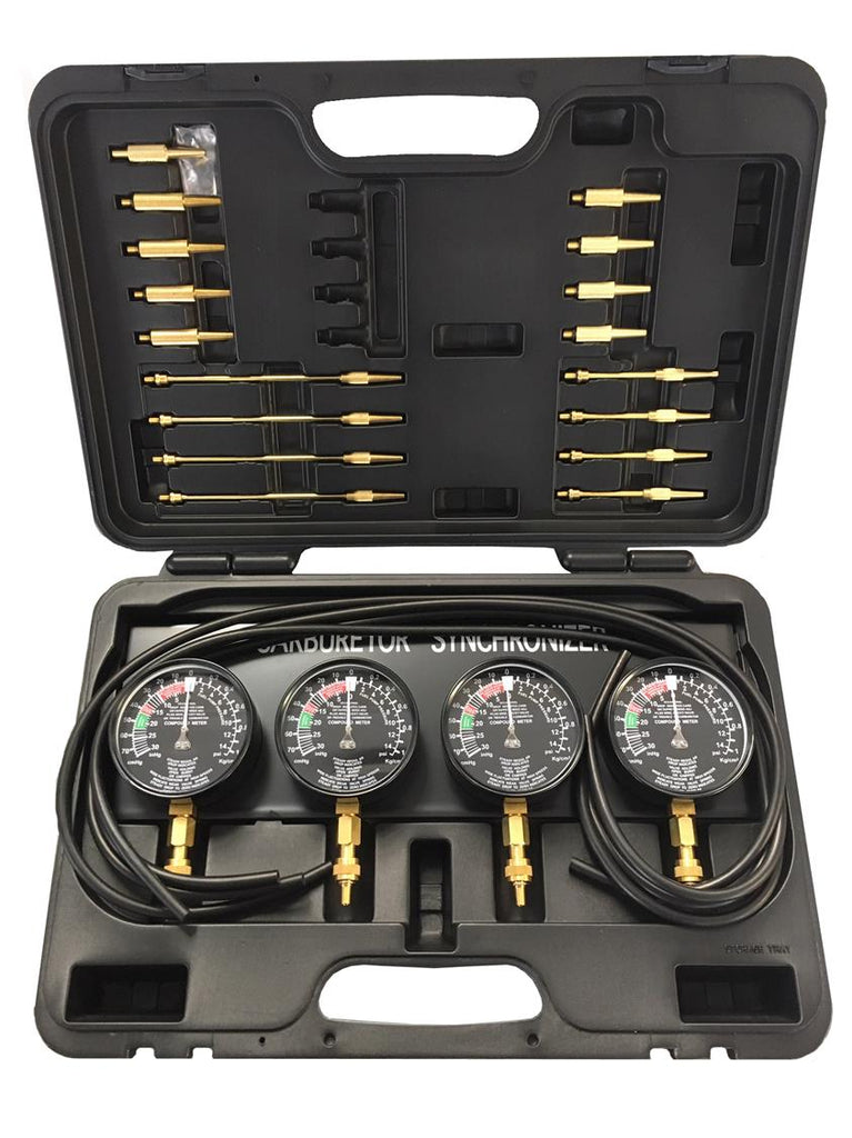 Carburettor synchroniser 4 x 2 1/2" vacuum gauges with hoses & connectors
