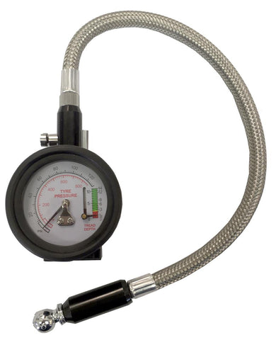 Professional tyre pressure gauge with easy to read dial and strong braided hose. Available in two versions.