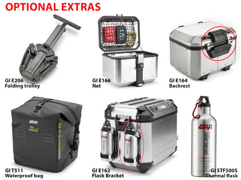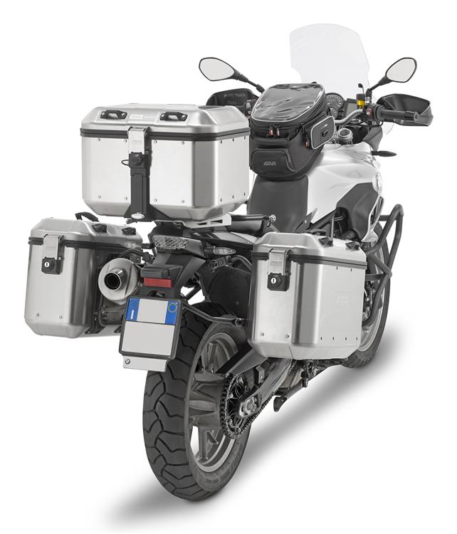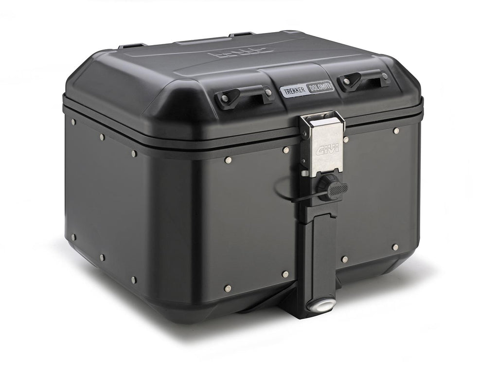 Givi Trekker Dolomiti is a simple option for rugged aluminium touring cases. The top-box mounts using Givi's patented and time proven MONOKEY® system and it takes just a few seconds to attach and release from the motorcycle. The system is simple, secure and extremely robust, making the Dolomiti range a great option for anyone looking for a more cost-effective aluminium touring case.