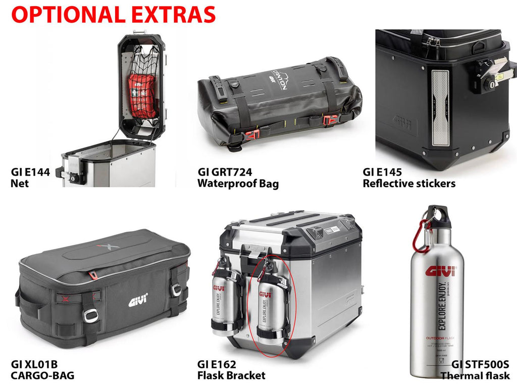 - HOLD IT EASY® SYSTEM: the Trekker Dolomiti has a hook system (patent pending) allowing it to be tilted without releasing it completely from the frame. This mechanical system has been specifically designed to prevent the cases from being accidentally dropped and to facilitate loading and unloading even if there is a bulky central top-case, which could make it difficult to access and open the lid. The "Hold It Easy System" is not compatible with some Monokey frame models (it is included with the case, but not supplied attached to the case).