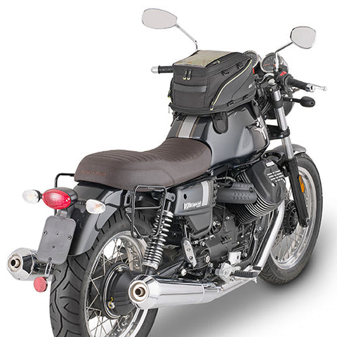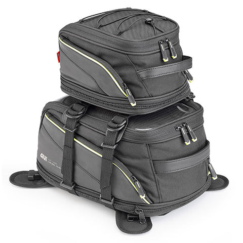 Universal expandable tank bag, 26 litre. Can attach to the bike via magnets or quick-release straps, also can be converted to a shoulder bag or rucksack.
