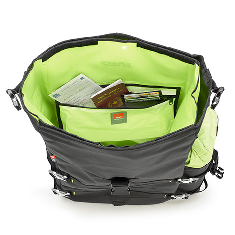 The GRT709 Canyon side bags are the ultimate for off-road adventure riding. At 35 + 35 litres, this pair of bags features a new quick release UNIFIT mount, with Givi security locks. A pair of nylon mount plates are included for fastening to Givi PL (Monokey or Cam Side) racks or similar other brand side frames. The bags feature a waterproof, roll-top design with hi-visibility interior and multiple compartments, as well as plenty of cinching straps to keep everything tight and compact. For those wanting to carry their tactical equipment with them, the bags also feature the M.O.L.L.E system on the front and base and come with a selection of fasteners. Made from high resistance 1200 W/R Polyester, with Hypalon fabric inserts and an ISO 4892-2 rated UV resistant outer, these bags are sure to tick all the boxes for any serious adventure rider.