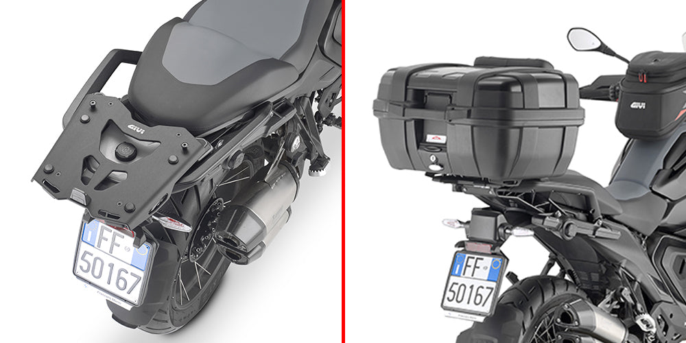 To fit a Givi Monokey top box, you will need an SRA5146 (to be mounted to an original plastic rack) or an SRA5143 (for mounting on original aluminium rack with electromagnetic joint and floating plate).