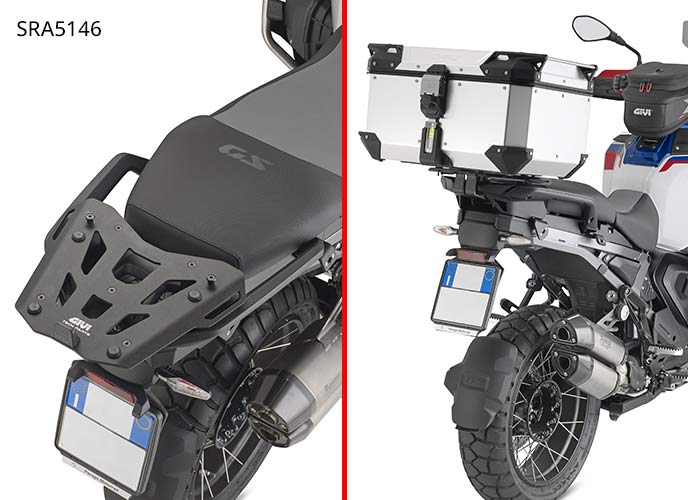 To fit panniers, you will need a Givi PL rack. You can use the PLOS5146CAM or PLO5146CAM for Givi's Trekker Outback panniers, or a PLO5146MK for Givi hard or soft Monokey panniers. All pannier racks can be converted to rapid release with the addition of the 07RKIT. Alternatively, if you have an original pannier holder, this can be adapted for Monokey panniers with the PL5146.