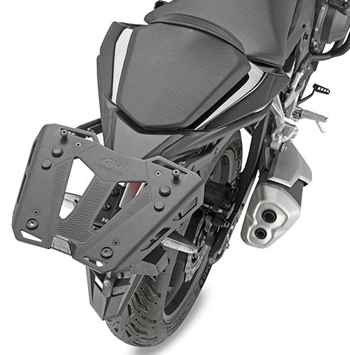 To fit a touring top box or soft luggage on the rear rack, you will need an SR top box kit plus a plate to match your chosen top box (ie Monokey or Monolock) or the EX2M plate (for mounting soft luggage). Click here to see top box options or click here to see more info on plates.