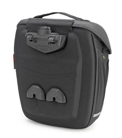 Pair of thermoformed Multilock side bags with vertical load. Expandable, with an 18 ltrs capacity. Rigid but light, these bags use the bike-specific Multilock fitting system for rapid attachment/detachment, to be combined with the specific side soft bags holders GI TMT _____. Please note, the bags and racks are sold separately.