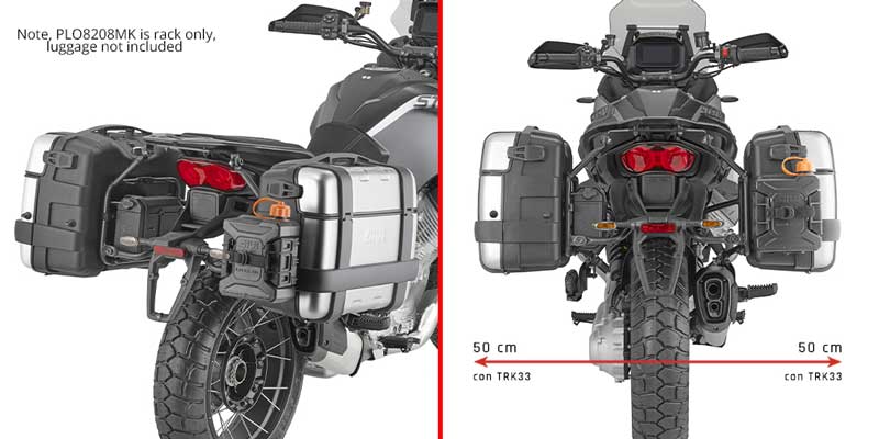 • PLO_MK are Givi's new One-Fit system, a rack preconfigured for Monokey, but can be adapted to take Trekker Outback panniers