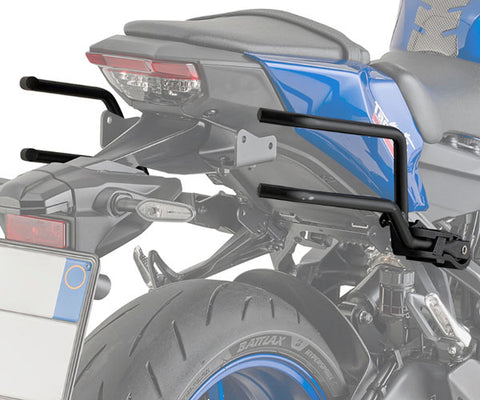 To mount Givi panniers to your bike, you will need a set of bike-specific racks from Givi. Racks are not universal and each bike is different. Please refer to the My Motorcycle section of Givi's website for fitments or contact us for help with your bike. If there is no rack for your bike on Givi's site, check the listings below, as we sometimes have out-of-production racks still in stock.