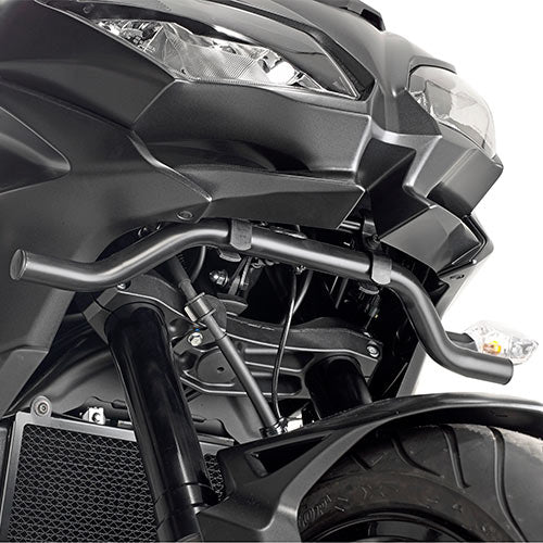 Givi's spotlight fitting kits are designed to make it possible to mount a pair of additional spotlights where an engine guard is not present. These kits are bike-specific, making it possible to correctly position Givi's S310 halogen spotlights or S322 LED fog lights to the sides of the front end.