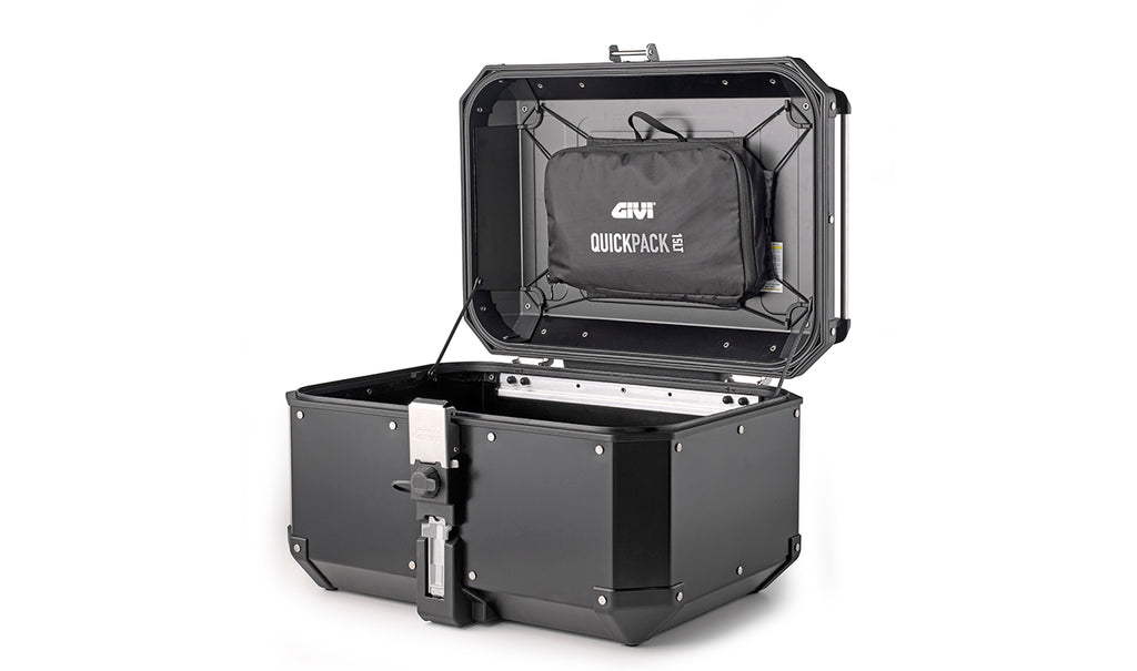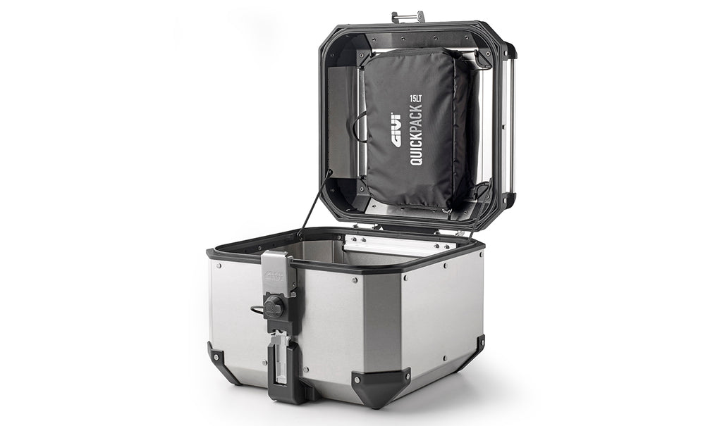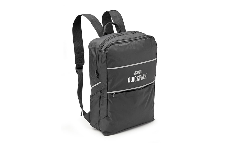 One little bag that punches well above its weight, the new Givi T521 Quickpack fits snuggly inside the lid of your Givi aluminium top box and quickly converts to a backpack, perfect for day trips and short walks away from the bike. A handy 15 litre capacity, with plenty of separate pockets, wide shoulder straps and a waist strap, it attaches easily to mounting points in the top of Trekker Outback or Trekker Dolomiti cases, right where you need it.
