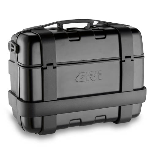 Combining the best of both worlds, adventure riding or touring, Givi's Trekker range of cases are constructed from a rugged plastic body, with an aluminium outer shield for stunning looks and extra protection. TRK cases attach using Givi's patented and time proven MONOKEY® system which allows the use of a single key for opening the lid, as well as for releasing the case from its mounting plate. As well as the entire lid opening, the 33 and 46 litre cases feature a smaller lid that can be opened whilst the bag is attached to the bike giving easy acess to the contents of the case.
