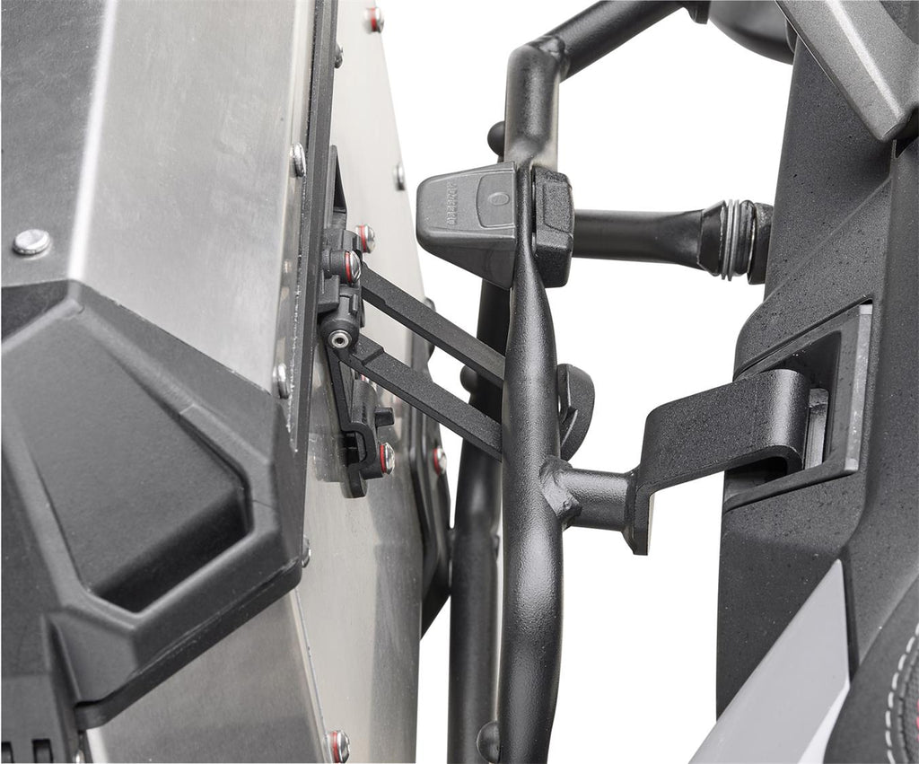 The new WIRELEASE® system uses an external knob at the rear of the case to detach the case via a cable system (patent pending). True to the MONOKEY® name, only one key is needed to both open and lock the lid of the case, as well as to remove it from the bike. Trekker Alaska cases also feature the new HOLD IT EASY® system which allows the case to be semi-detached and tilted outwards for easy access. The new hinge design allows the lid to be opened completely without the use of straps or retention cables. Trekker Alaska is the ideal upgrade to existing MONOKEY® panniers, without needing to change fitting hardware, but also a great choice for new set-ups with loads of great features.