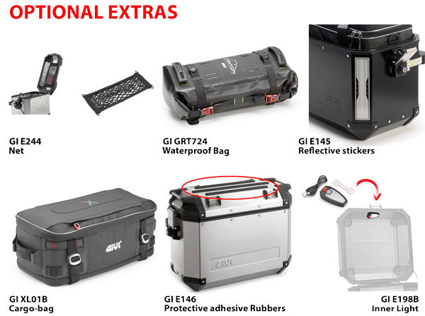 Note: the pannier racks required to fit these panniers (PL__CAM) are bike-specific, so we recommend checking www.givi.it first to see what fitments are available for your bike.