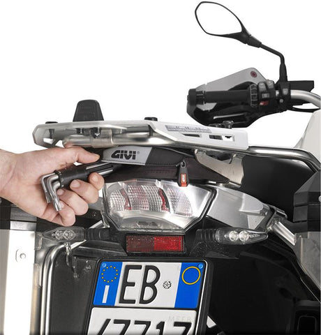 XStream tool bag designed to be mounted under the original rear rack of the BMW R1200GS Adventure 2014