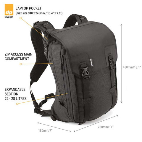 The MAX28 Expandable Backpack utilises Kriega’s groundbreaking Quadloc-Lite™ harness, combined with high-tech construction materials to meet the demands of the modern-day urban motorcyclist. Composed of three sections: a 100% waterproof laptop pocket, a fold-down zip compartment packed with organiser pockets, and a spacious main central compartment with heavy-duty zip access, expandable from 22 to 28-litres when needed. This motorcycle specific backpack is ideal for carrying a full-face helmet around town or for packing in your gym gear.