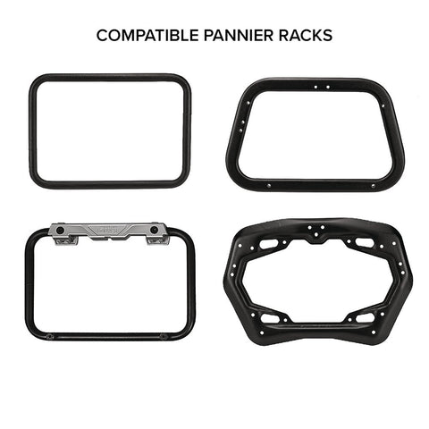 Included with the pair of Platforms is a fitting kit to mount on 16mm - 19mm (3/4") tube pannier racks with standard flat hoop shape and SW-Motech non-tubular racks.