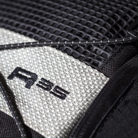 The ultimate touring backpack incorporating the unique zip-in Quadloc™ harness, the ground breaking R35 enables a motorcyclist to carry bulky, heavy kit in long distance comfort. The harness is angled away from the underarms for total freedom of movement and no shoulder pull. Chest panel includes 2 x zip pockets and a 3M Scotchlite reflective zip-cover. The Kriega R35 has a 35-litre capacity with 6-point pack compression. Organizer pockets include a front mesh pocket with shock cord compression, a top zip-mesh pocket, 2 side-access zip pockets, an inner A4-sized sleeve pocket and key clip. Increase capacity by adding a Kriega US-5 or US-10 Drypack (sold separately).