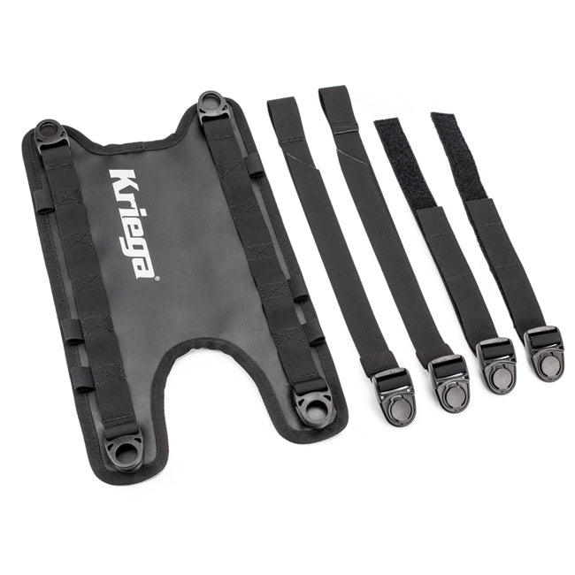 Converts the Kriega US-5, US-10 and US-20 drypacks (plus OS-6 and OS-12 Adventure Packs) into a tank bag. Includes full fitting hardware and instructions. Front straps locate onto radiator mounts or headstock. Rear quick-release straps locate with industrial VELCRO® closures under the seat (self-adhesive VELCRO® closures included).