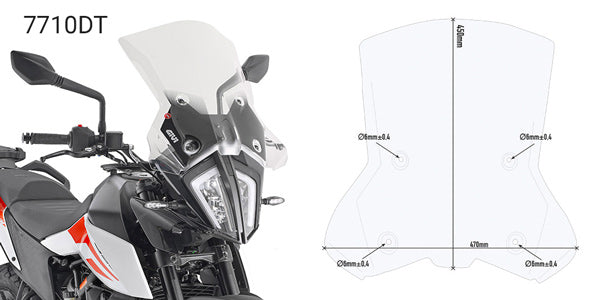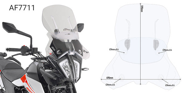 AF7711 - Specific sliding wind-screen transparent, Airflow. Maximum height 63.5 cm (12 cm of extension) width 35 cm / to be mounted instead of the original screen